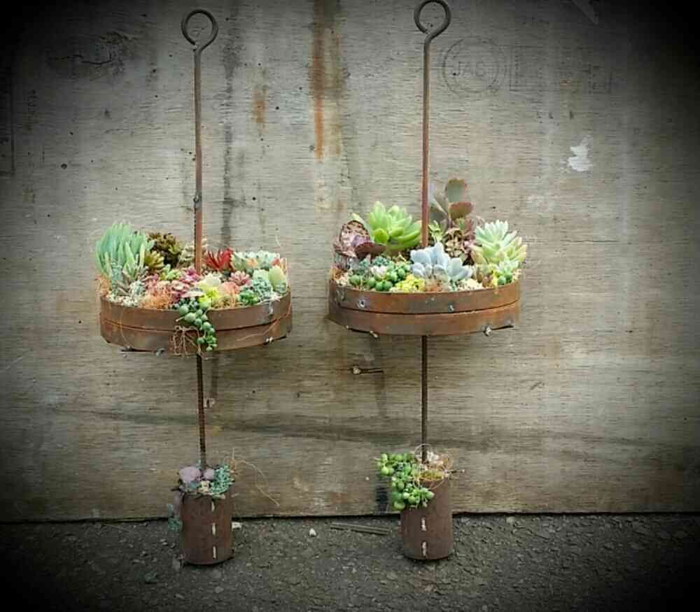『工場のおじいさんの鉄の吊るリング二列×多肉とセダム』~工場のおじいさんシリーズ~