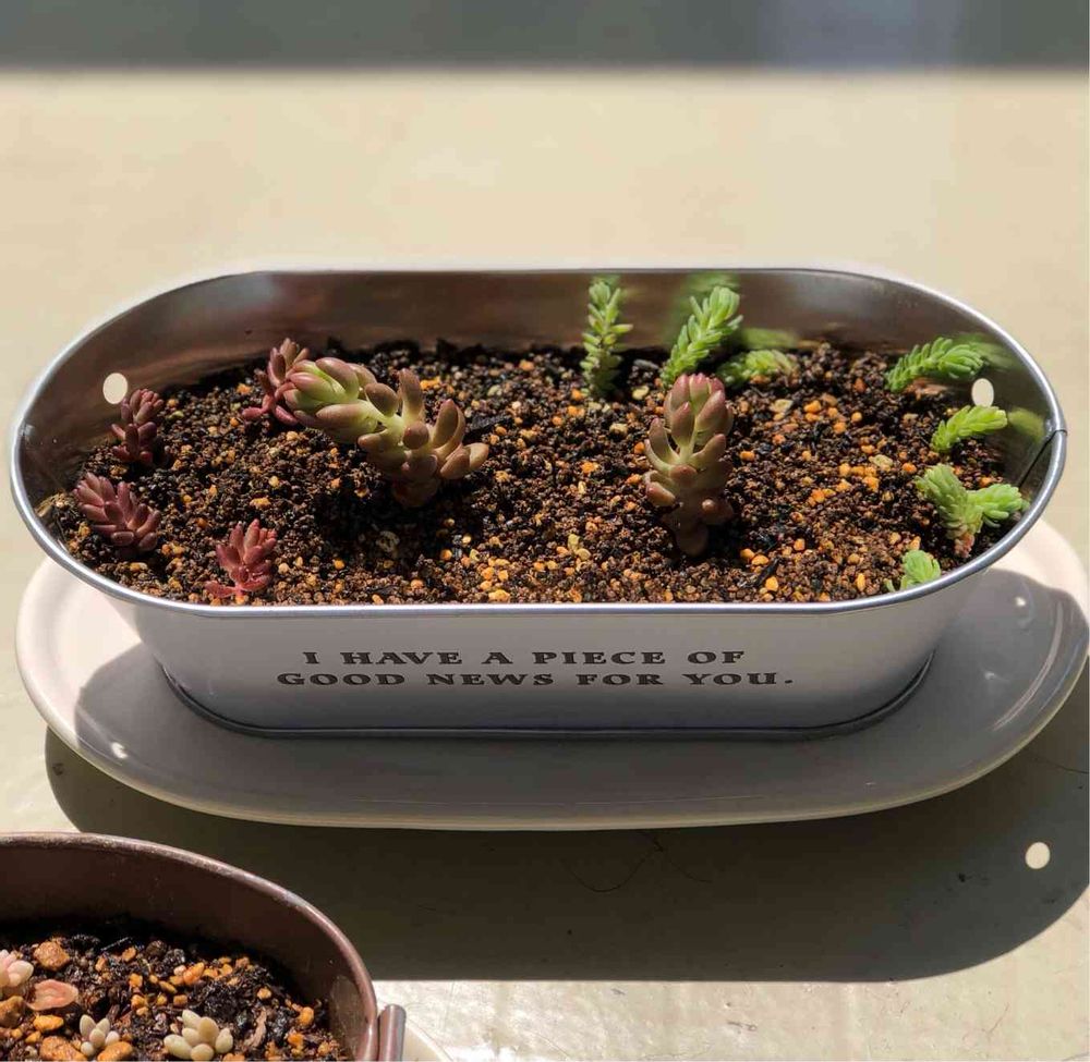 八千代さんと一緒にいただいたホワイトストーンクロプさんと、おまけのコーラルカーペット、ヒスパニクム。植えるセンスのなさに愕然とする🤪