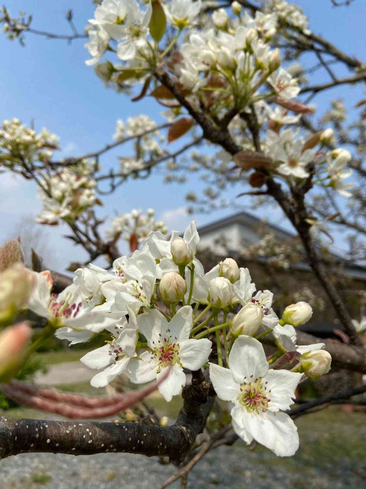 いつもの年は、桜が咲いて、桃の花が咲いて、それが終わったら梨の木が真っ白い花を木一杯に咲かせとってもきれいです。