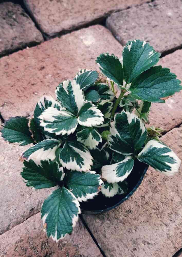 以前 大型園芸センターで この斑入りのストロベリーの苗を入れた寄せ植えを見ました。