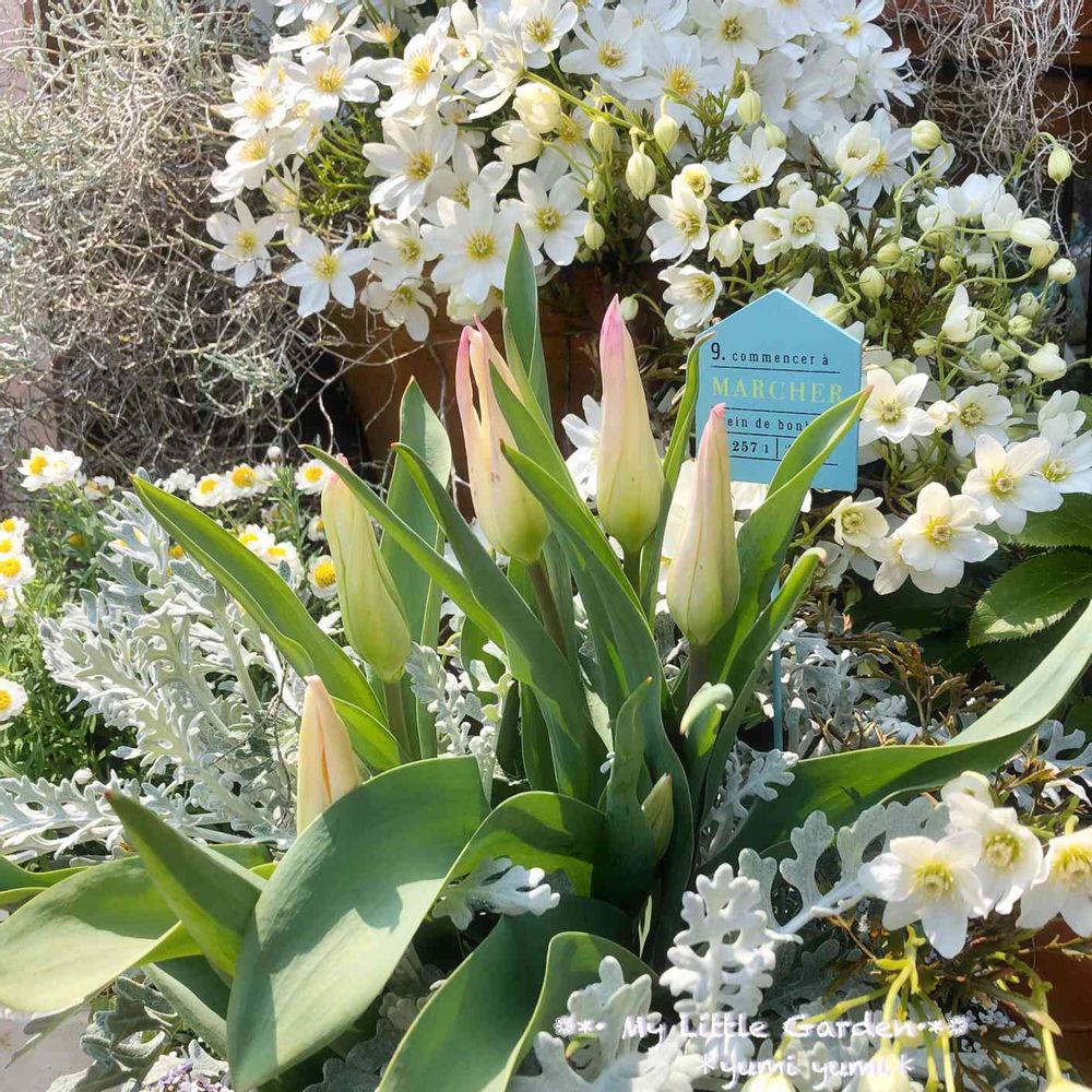 チューリップ🌷とシロタエギク🌿✨
