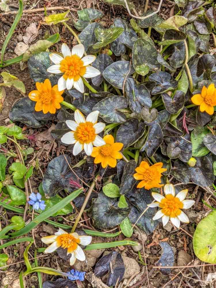 遅くにごめんなさい。普通のレモン色のリュウキンカは育てているんですよ。早春に咲いてくれるので嬉しいのですか、あちこち散らばって繁殖力凄いですね。白とオレンジ色は初めてで、新鮮でした。
