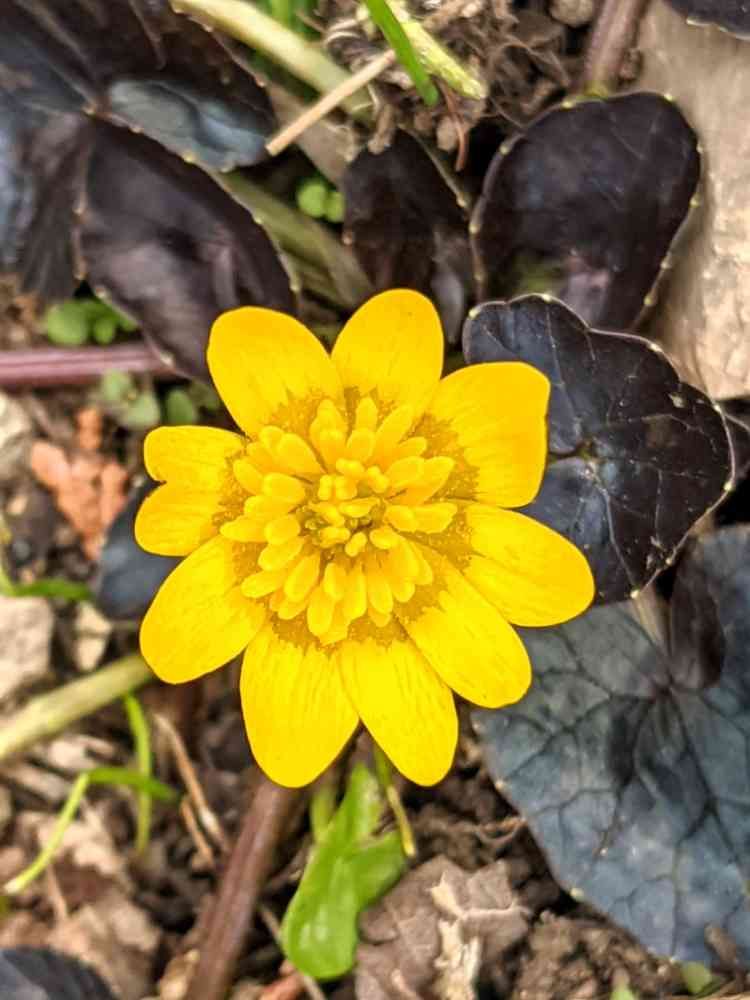 これが普通のリュウキンカと同じ花の色での黒葉リュウキンカです。