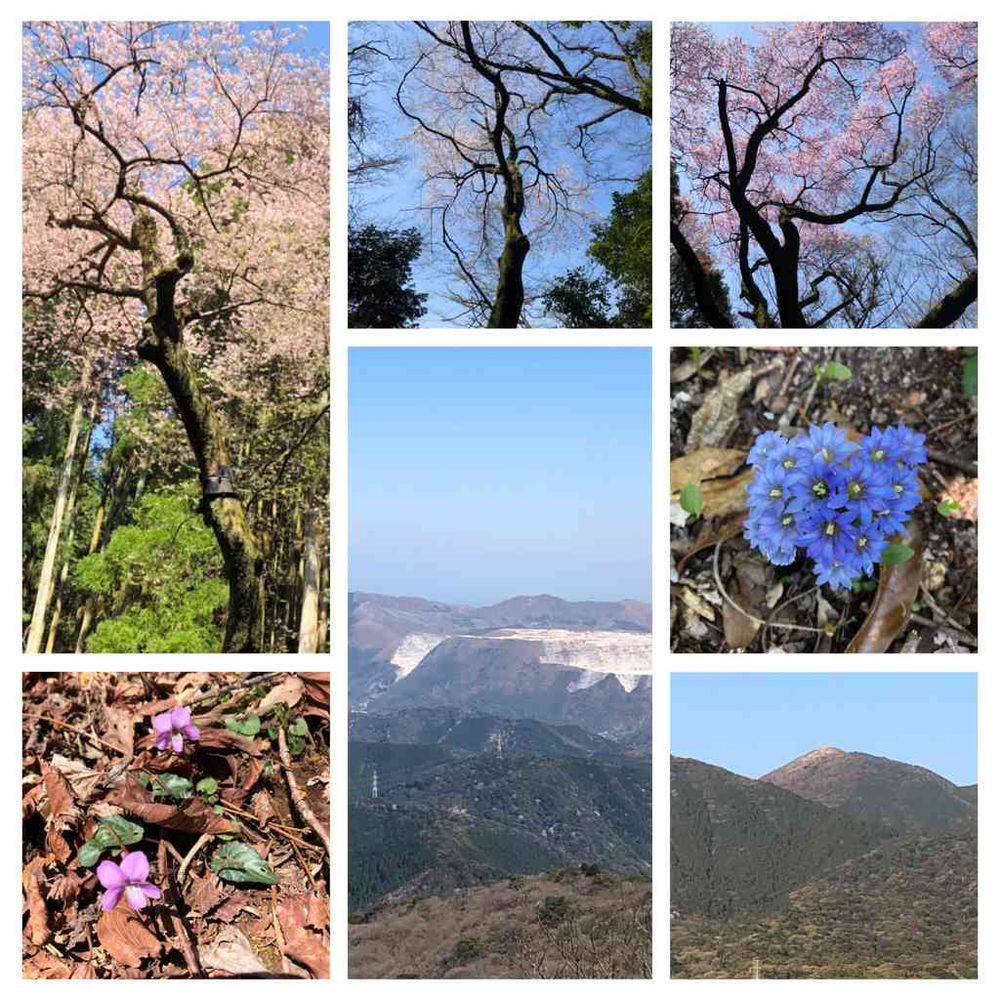 故郷の山⛰福智山に登りました。学校がお休みなので、親子登山が多くて賑やかでしたよ😁登山口から30分ぐらい登った所に、樹齢600年位のトラノウ桜がありますピンク色のお花🌸が小さな桜です。またそこより少し登った所にも、源平サクラと言う二本の大きな桜の木が有ります。今年はどの木も満開を迎えて綺麗でしたよ😁🥰お天気も良く、山頂の涼しい風が気持ち良かったです😄🎶