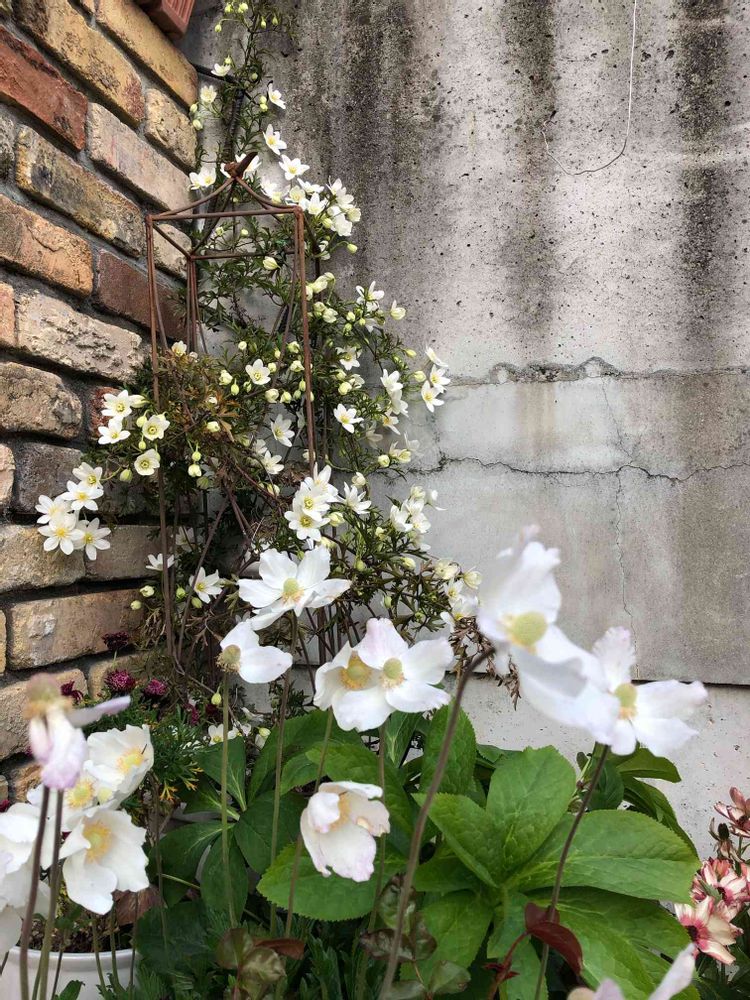 NIKOさん はじめましてm(_ _)m アネモネを検索していてたどり着きました。こちらの後方の高い所に咲く白いお花はアネモネシルベストリスとよく似ていますが同じ花?それともクレマチスの何かでしょうか?教えて頂けたら嬉しいです。