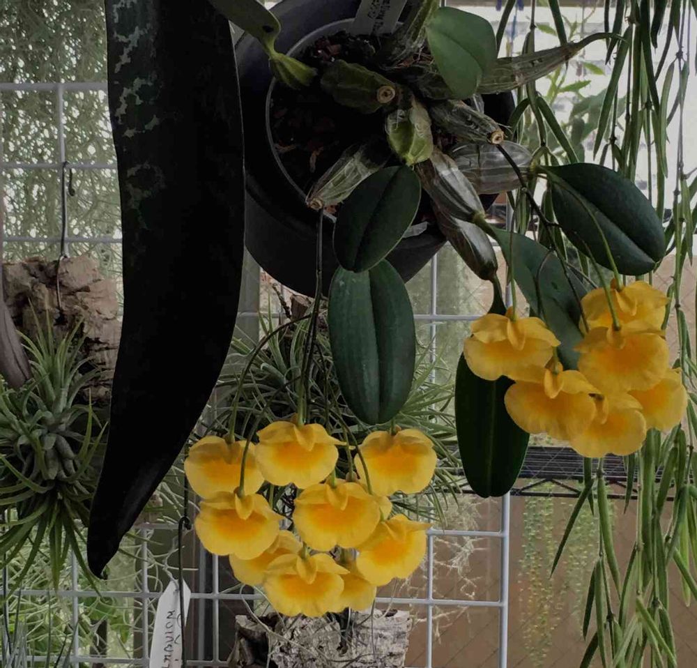 ウェンツェン、安いの。これは500円で去年の福岡蘭展で買ったやつ。だから結構大きな株で売ってたらそれを買うと来年は黄色シャワーよ。りんごちゃんが好きそうな板つけも可能だし(でも、夏は水やりしょっちゅうがデンドロ一般必須)、探してみてね😉