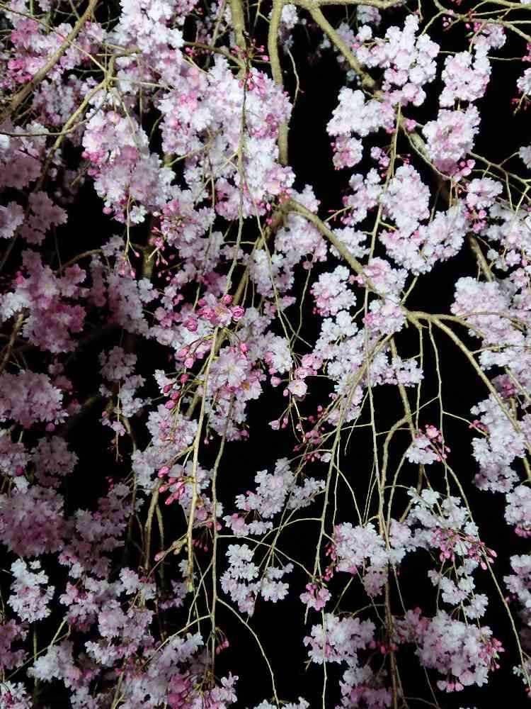 真夜中の、垂れ桜です。とても綺麗で、幻想的だあー。