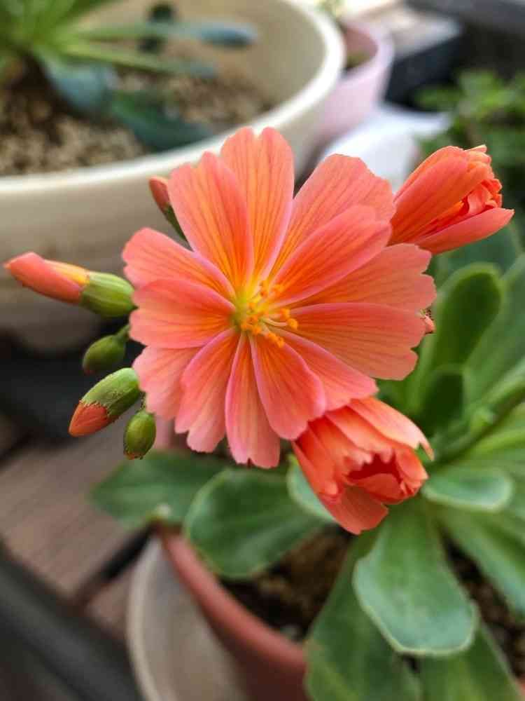 我が家では4種類目のレウィシアさん。買ったときは色がわからなかったけど、オレンジ色でしたね!