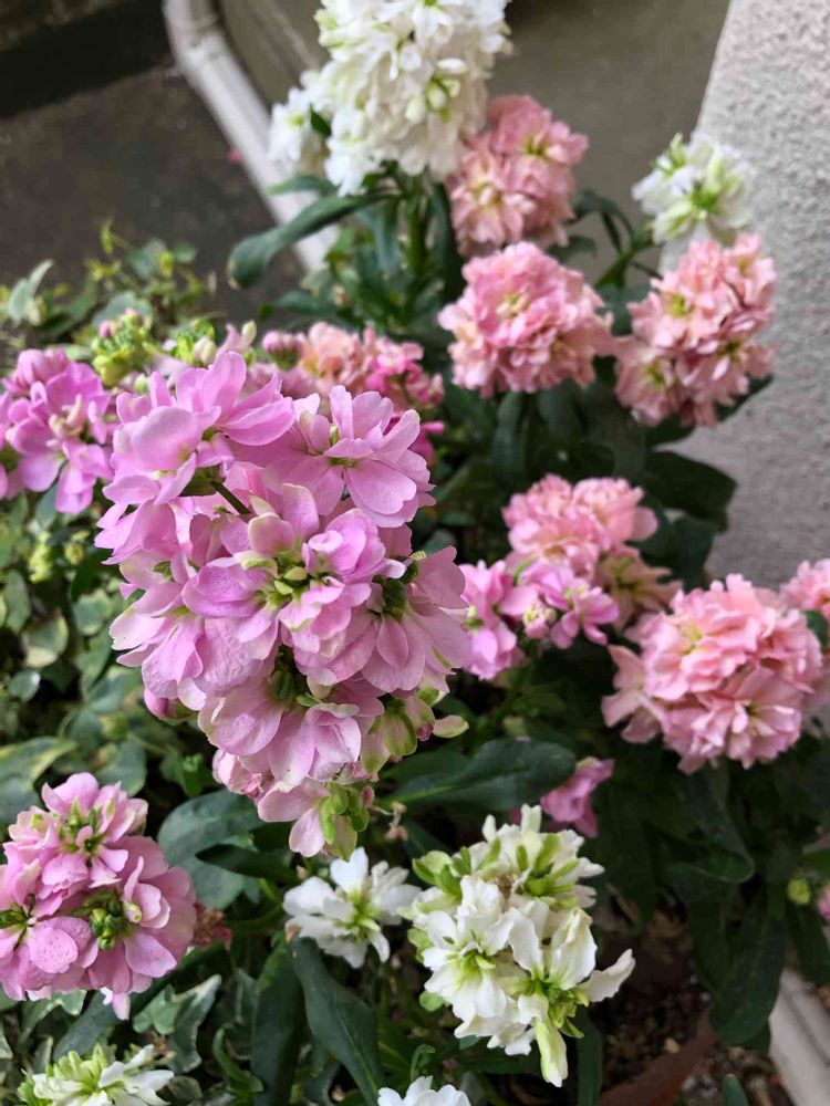 昨年12月からずっと咲き続けているストック。玄関ポーチで香りを振りまいています🥰
