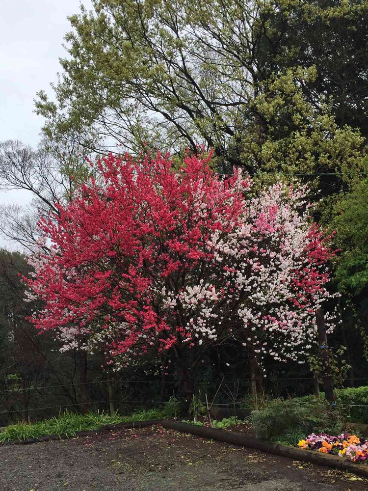 一本の木に三色咲いていて、とても綺麗でした🌸