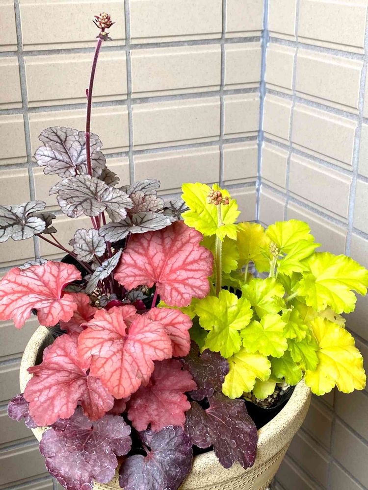 とってもバランスの良いヒューケラ寄せ植えです💘好き❤️