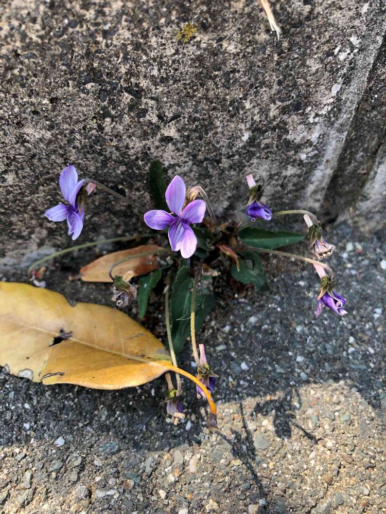 割と車通りの多い道の縁石に、1つだけ咲いていました💜