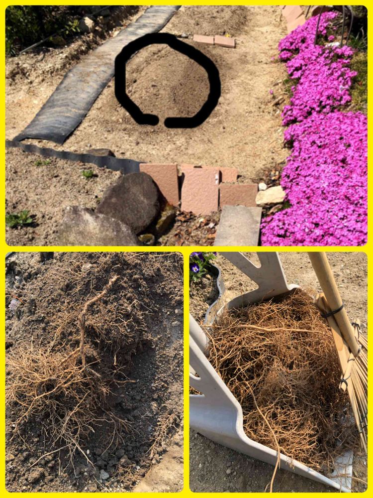 右下 腐葉土・石灰・米糠、混ぜ込んで完成。あっ、主な根はpicこれだけ。もちろん、カナブンなどの幼虫3匹排除。