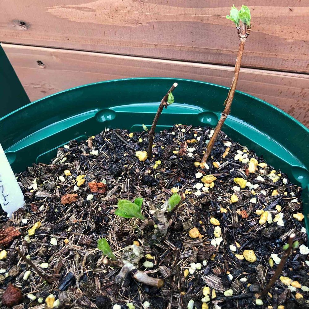 中央の株の周囲に突き刺さっている枝は、芽が膨らみつつあったことに気付かず、変なタイミングで剪定してしまい、慌てて土に挿したものです😅
