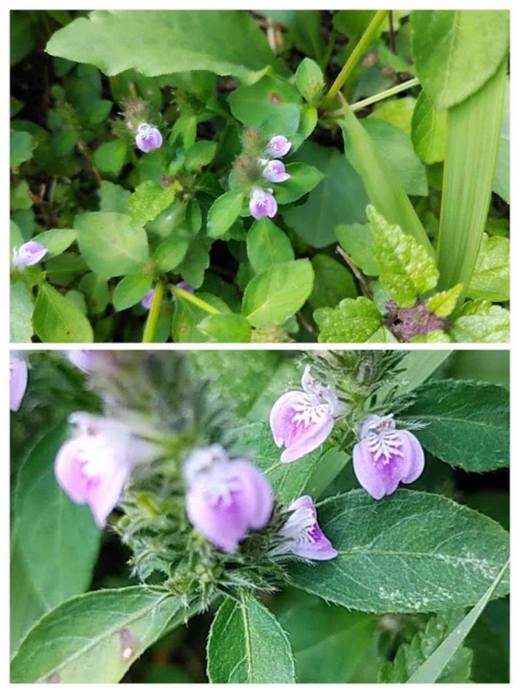 ふさふさした穂の隙間から、ピンク色の小さな唇形の花が咲きます。
