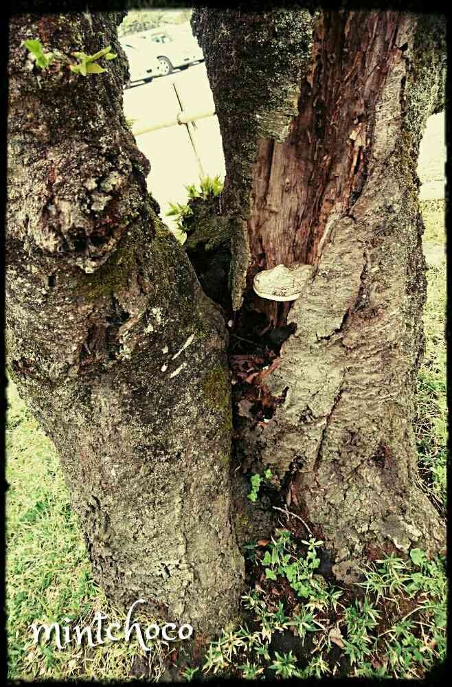 撒いた胞子で桜の幹もサルノコシカケ自身も