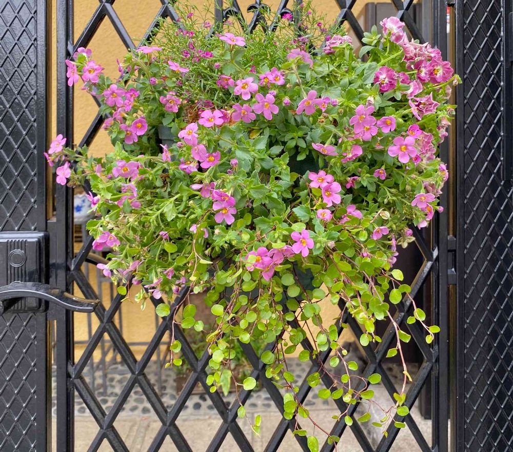 玄関に新しいハンギングをつくりました。ジプリフィラは可憐でかわいいです。