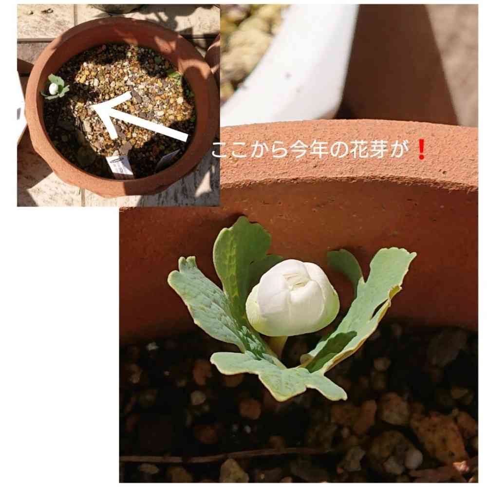 八重のカナダケシ、ことしの花芽、鉢の際に出ちゃいました。