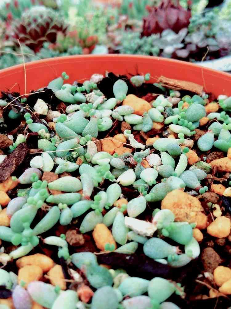 寄せ植えに使う際に、土に挿す部分の葉っぱだけを別の鉢にパラパラ置いてたら沢山芽が出て来ました🤗🤗🤗