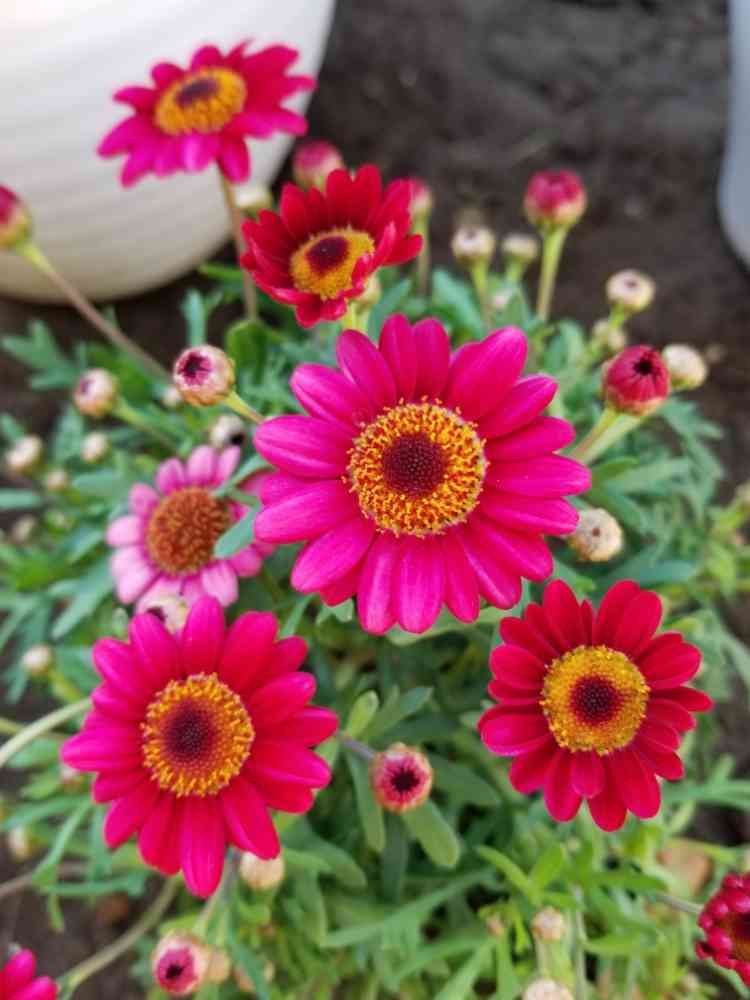 華やかな彩りを見せる深紅のマーガレットの華やぎ素敵ですね〜