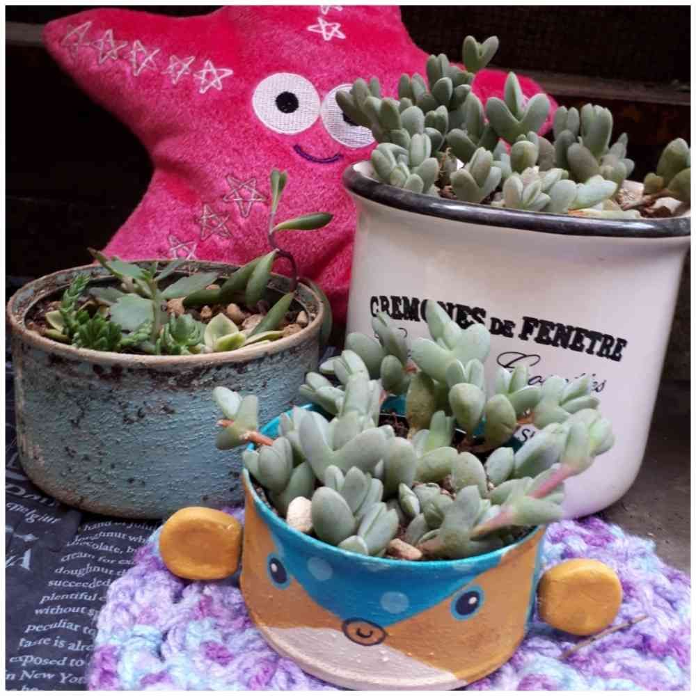 トト🌱をUpのフグリメ缶とポットに入れて茶色の鉢1つ分やで😊