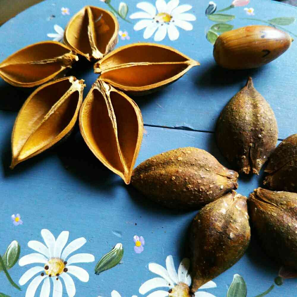 キリの実を遠くから見たことがあります。アップの姿もいいですね。特に中身?の姿。