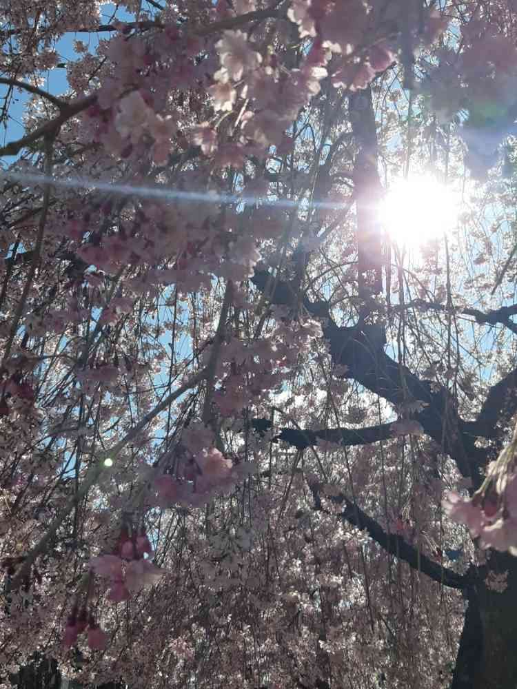 早朝での散歩、輝かしい垂れ桜🌸🌸