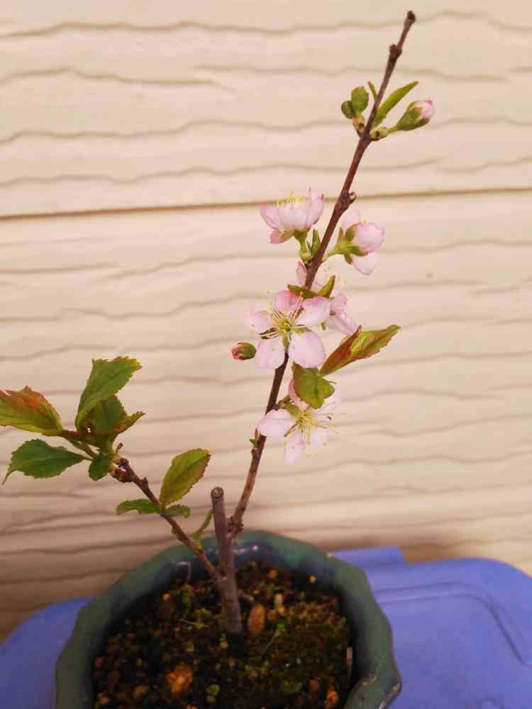 挿し木したニワウメをミニ盆栽で楽しんでます。