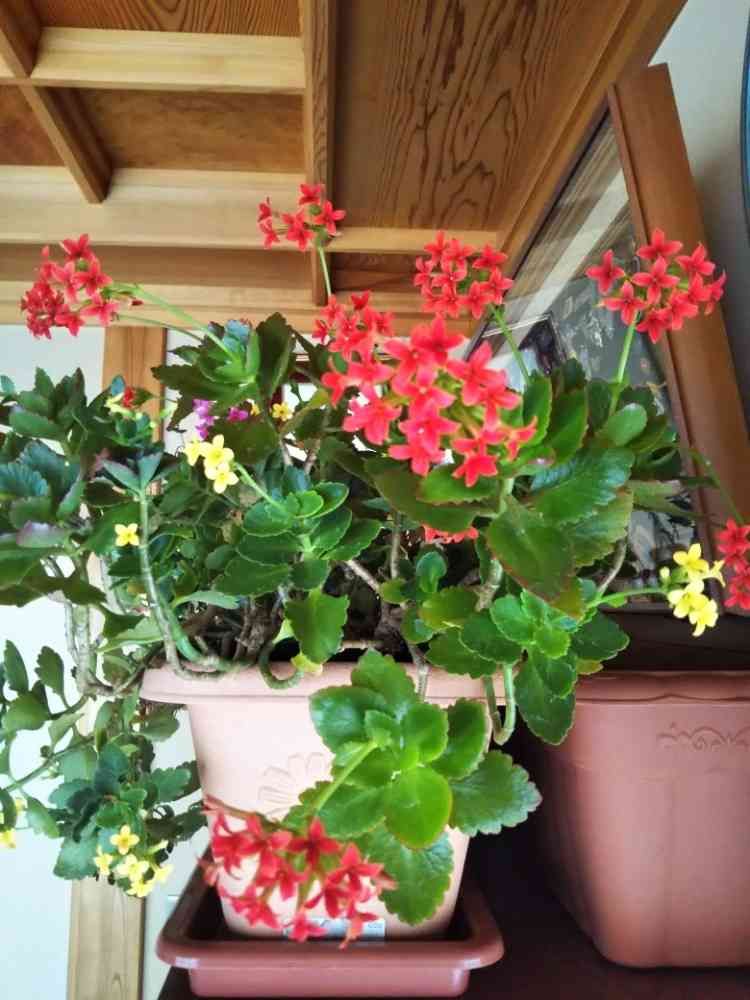 晩秋からの指定席に❗️茶タンスの升席に鎮座するカランコエ(都合に寄り一鉢に赤黄ピンク)、これも負けず劣らず、この寂しい時に満開になり和ませてくれます。長い付き合い👵同じ手間要らず、お互い様です。水は11月から月二回、今年は最近になく花咲きました。何が良かったかわかりません🤔昨年は🐛の💩が畳に落ちてましたこと、思い出しました。<満開になり二投稿目になります>
