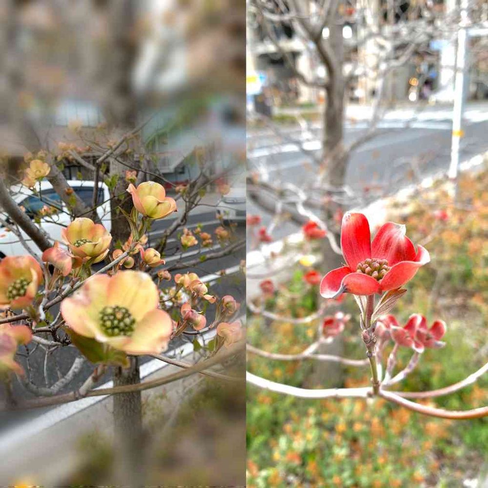 姫路駅の周辺はハナミズキ🌸が沢山植えられていて、そのハナミズキがふっくらと、咲き始めています。