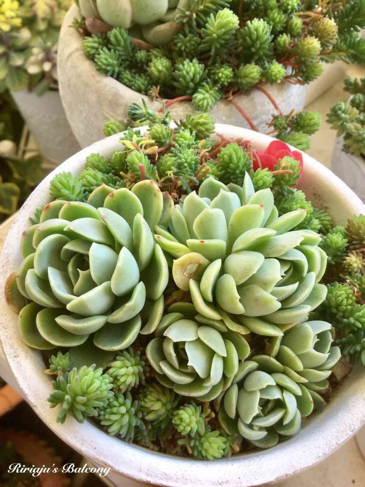 イリアの周りをセダムミルキーウェイで飾りました✨虫食いの葉っぱは見なかったことにしておいてくださーい🙏