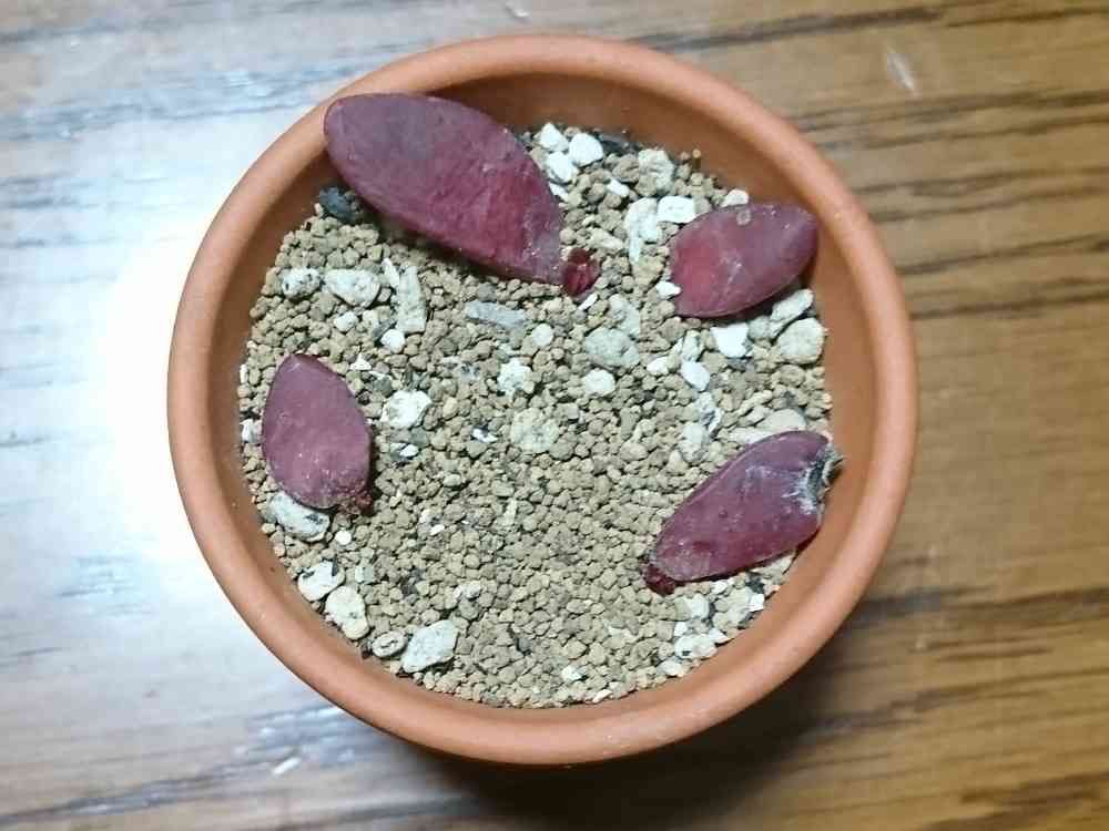 クラバータの小さな葉から発根していたので、素焼きの小さな鉢に移して育てたところ、ようやく芽が出てきました。