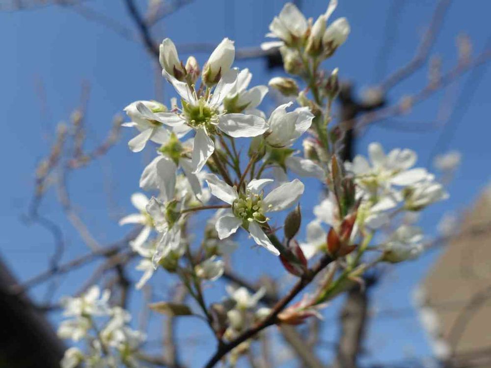 ジューンベリーの花が咲いています。毎年、桜と同じ時期に咲くのですが、今年は少し遅いようです。