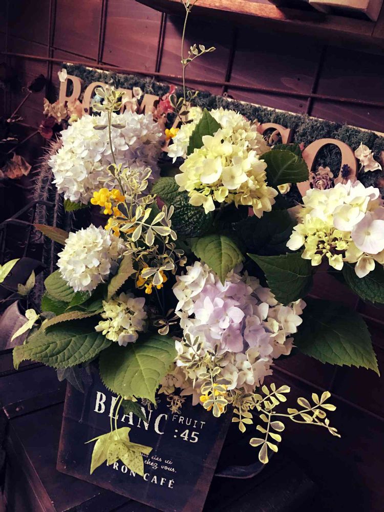 『ハイドランジア』と『コロニアバリエガータ』の寄せ植え。