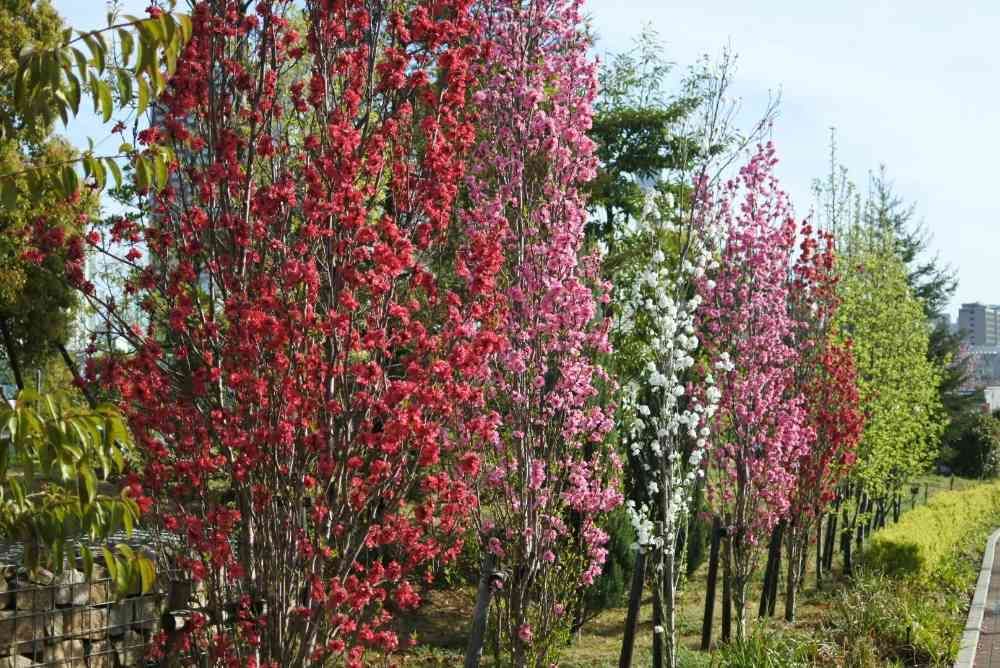 天気が良い朝に、こんなに色とりどりの並木は元気が出ますね。