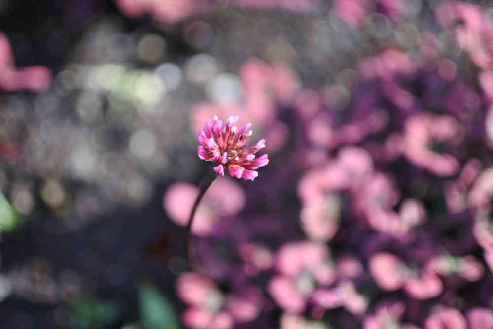 薄ピンクの葉にあわせたような花が立ち上がっています。
