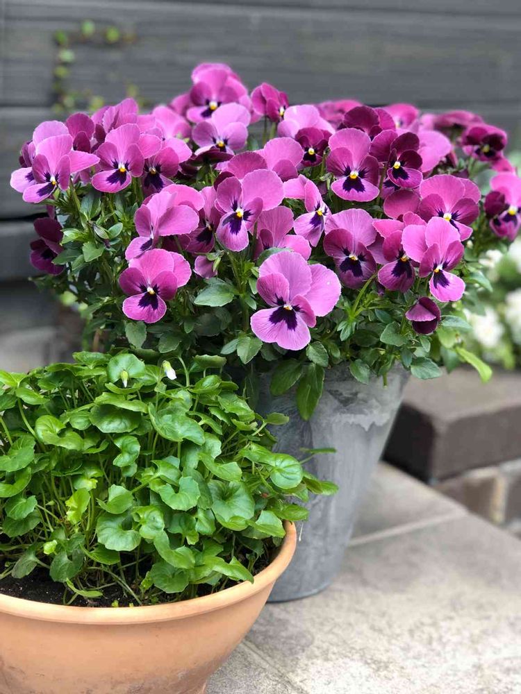 溢れるラズベリー色とグレーの鉢ってハイセンスで素敵☺️高さのある鉢って、ビオラにとっても似合いますね!