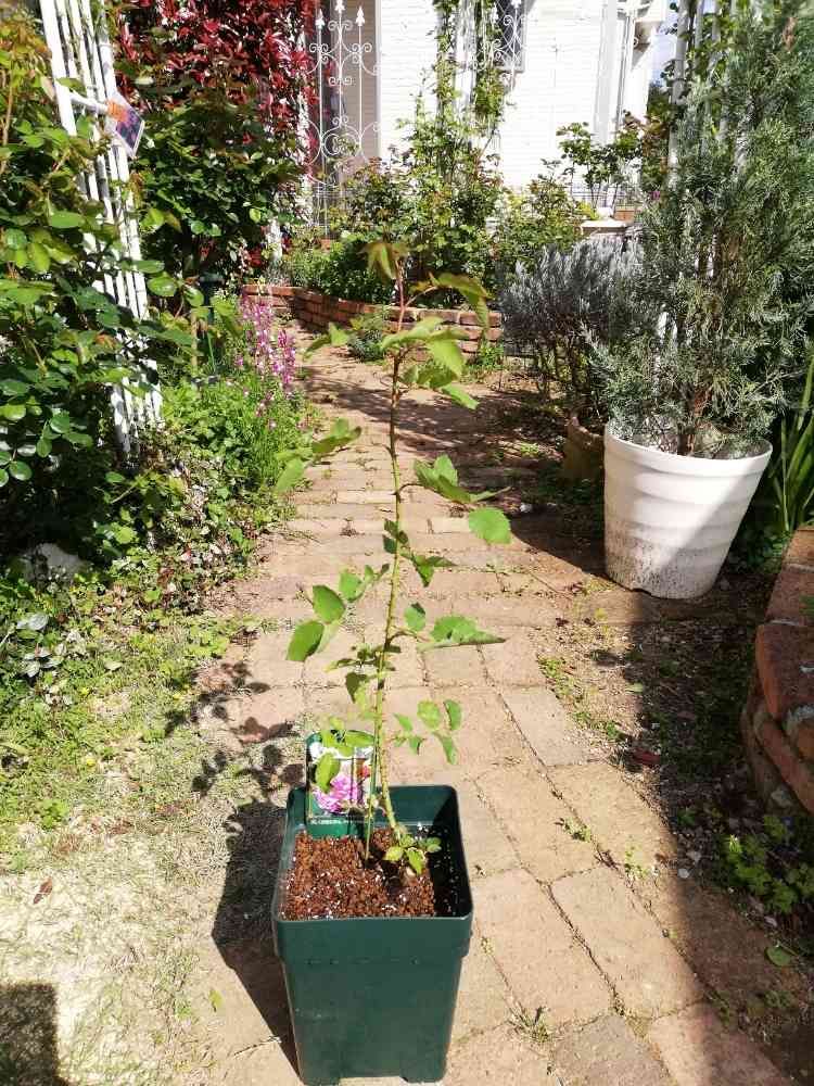近くの農産物直売所でルイーズオディエの新苗が売ってたので、買ってきて早速植え替え。
