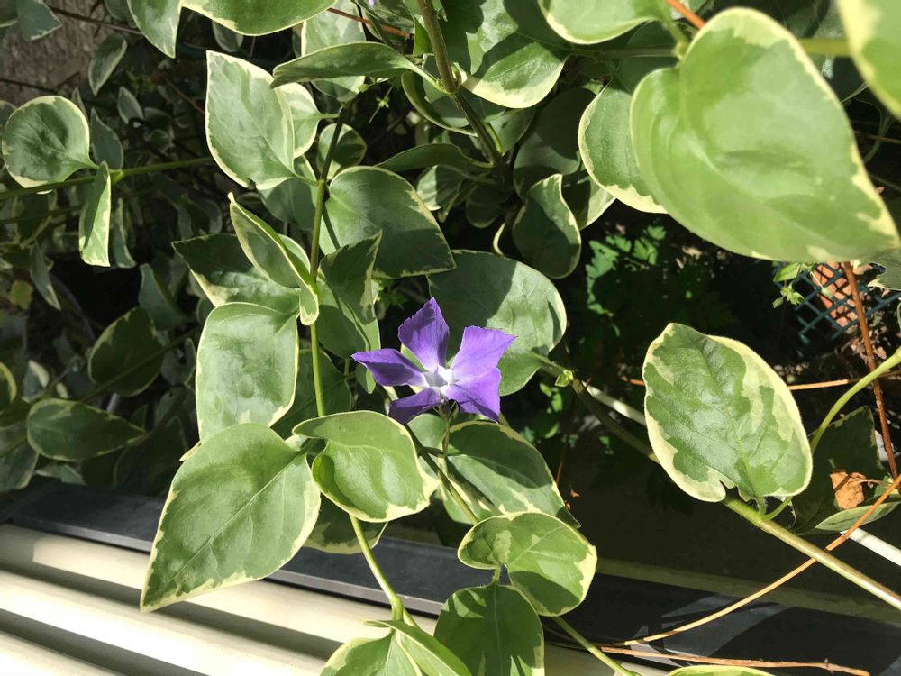 蔓性の物がいつのまにか増えて紫色の花が咲いた