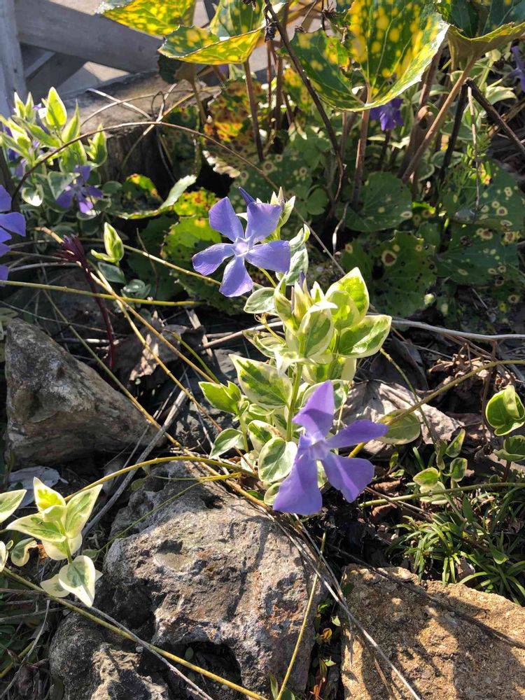 毎年花が咲くのですが名前がわかりません。花びらが5枚付いていて薄めの紫色です。