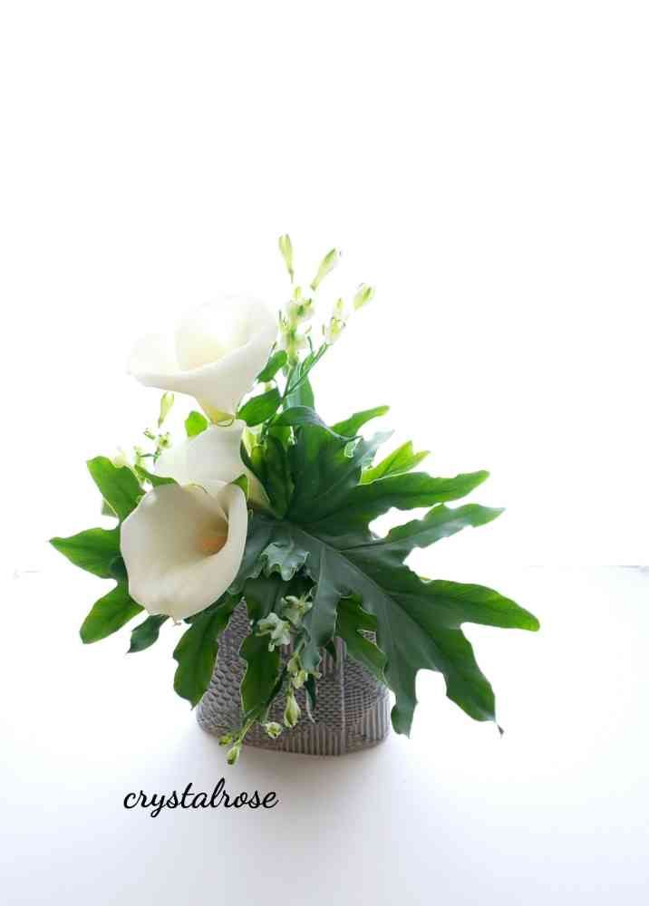 カラーとクッカバラとアルストロメリアをいけこみ。