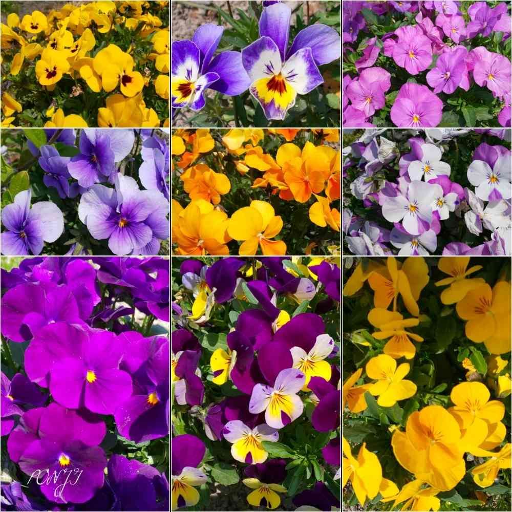チョッと出かけると、交差点近くの小さな花壇でも目に入ってくるパンジービオラ💙💚💛💜❤💗🍃🌱☀︎*.。🔆🔅🍃🌱