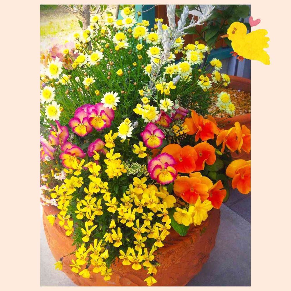 華やかだね😄真ん中の可愛いビオラは虹色すみれかな?