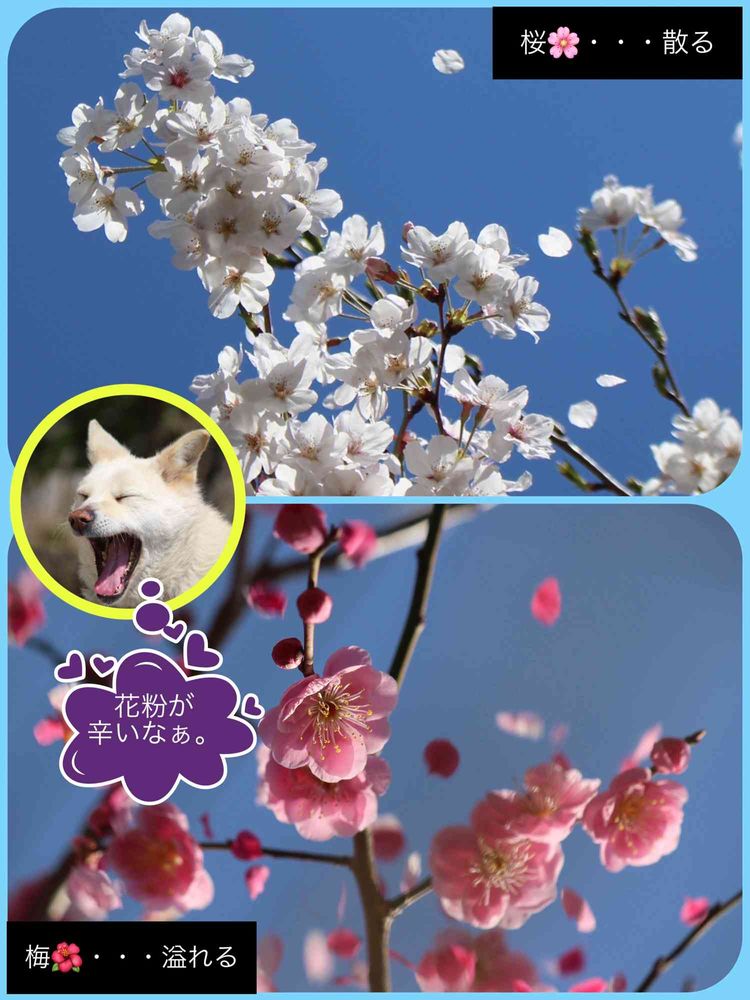 今回は、今満開の〝桜🌸〟と とっくにシーズンは終わってしまった〝梅🌺〟を紹介するね。〝花🌼は散り際が1番美しい〟ってよく言うけど本当かなぁ。私にはピンとこないけどね。それより〝食べ物は腐る手前が1番美味しい〟と言う例えの方がわかり易いけどね。😁😛