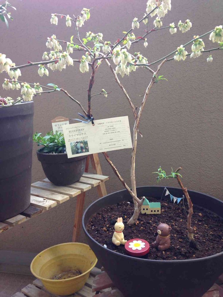 我が家のベランダも、ブルーベリーの木のしたで花見中の方がいます🐰🐻