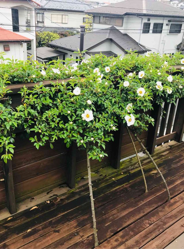 下に植えたナニワイバラが2階のバルコニーの床を突き抜けて 切ることができなくなってしまったんです