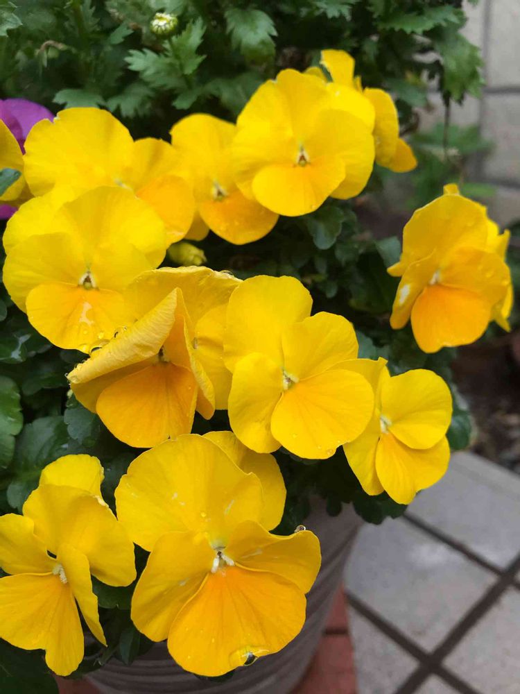 黄色い鮮やかなビオラのお花パワーを感じますね。