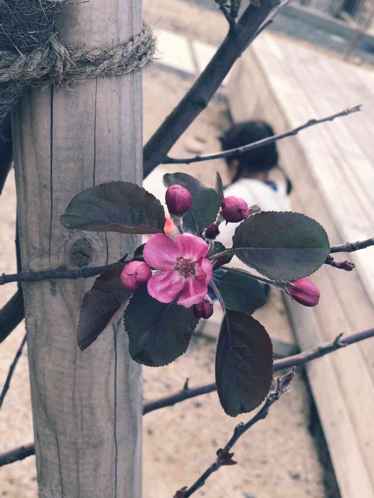 昨年夏に植えたクラブアップル、咲きはじめました。