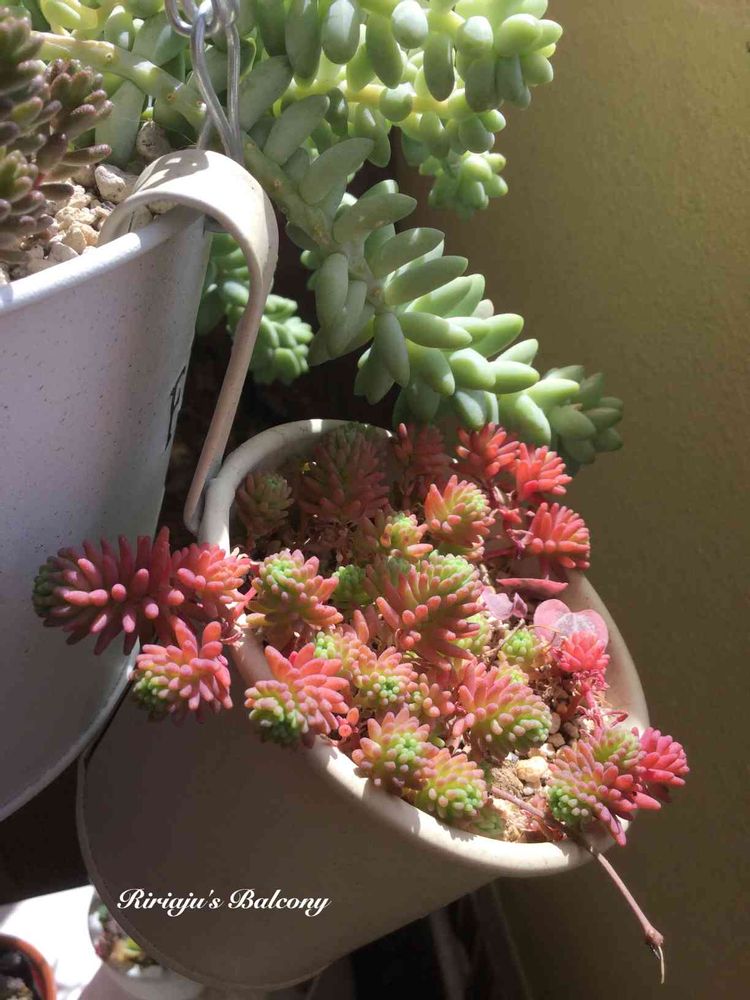 綺麗な色ですね😆うちは水やりすぎなのかな…ずーっとみどピンクなまま😰日当たりはガンガンですか?