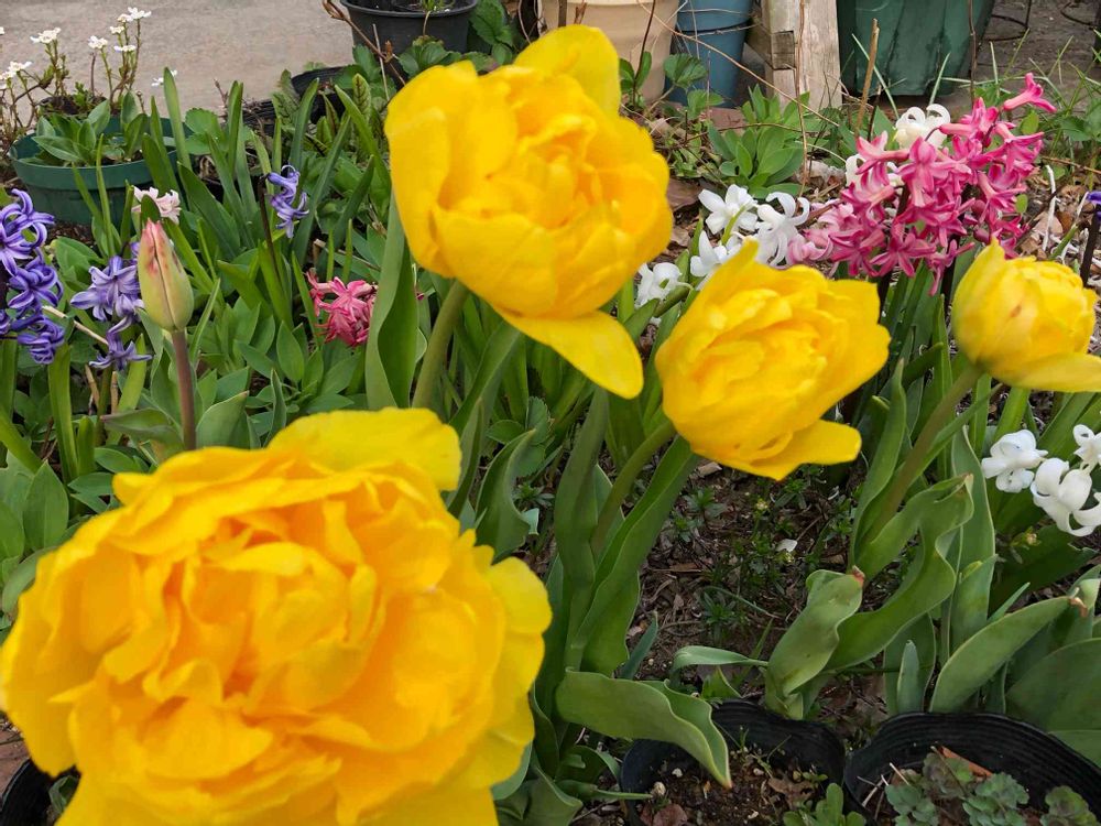 手前のチューリップがやたら大きくて手のひらぐらいあります😳🤭可愛さを通り越してしまってます😵